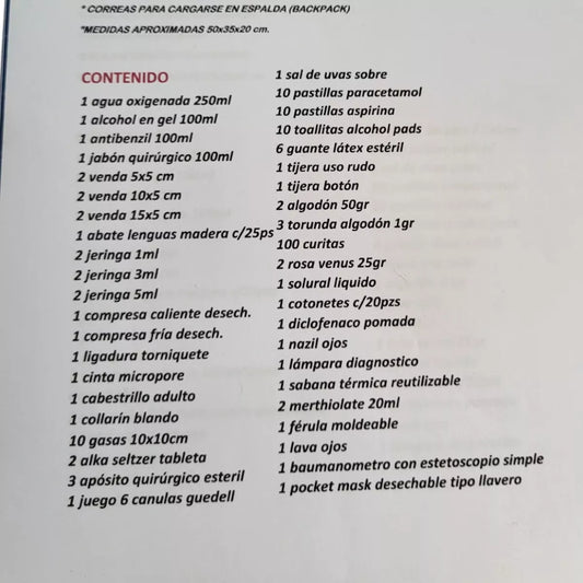 TG Mochila Botiquín Equipada Primeros Auxilios