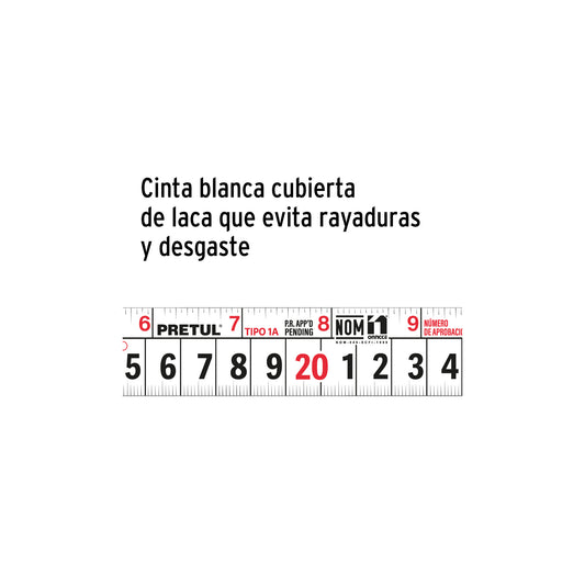 Flexómetro 8 m cinta 25 mm, INDIVIDUAL O display box con 6 pzas, PRETUL