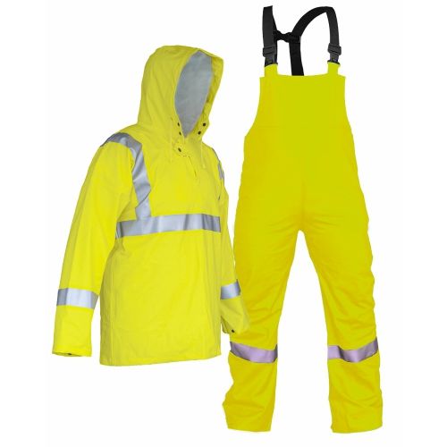 Impermeable de dos piezas con chamarra tipo sudadera, pantalón con peto y tirantes con reflejante en hombros, pecho, brazos y piernas SKU: DZ1014
