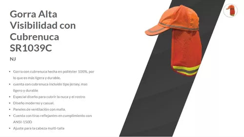 SR1039C Gorra De Seguridad Alta Visibilidad Con Cubrenuca